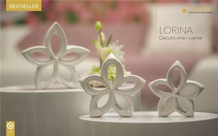 Die Blume Lorina in creme- weiß von Tiziano Keramik stimmt Sie voller Freude auf den Frühling ein und hält auch kalten Tagen den Sommer im Haus.