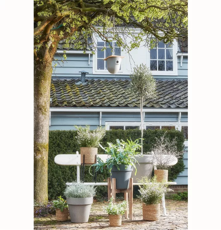 • trendiger Übertopf aus verdrehten Seegrassträngen
