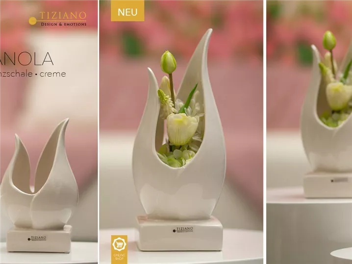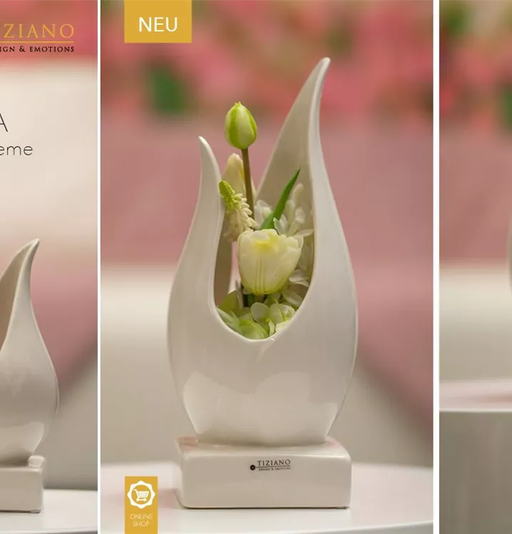 Jedes Teil kann durch die wunderschöne creme-weiße Farbgebung perfekt mit anderen Artikeln der Tiziano Serien kombiniert werden. Der Kreativität im laufe der Jahreszeiten ist keine Grenzen gesetzt.