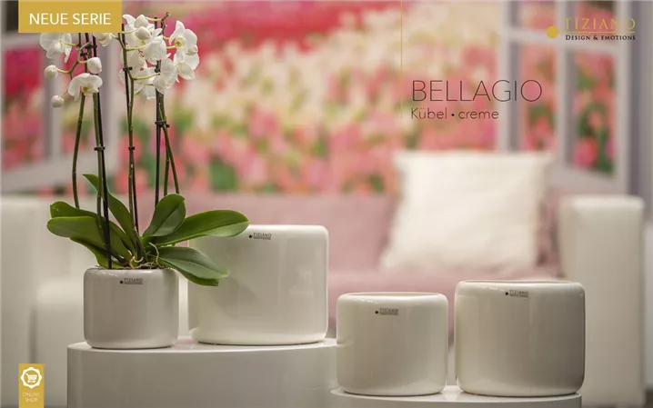 Der Blumentopf Bellagio von Tiziano Keramik hat eine schlichte runde Form. Wunderschön für eine moderne Dekoration.