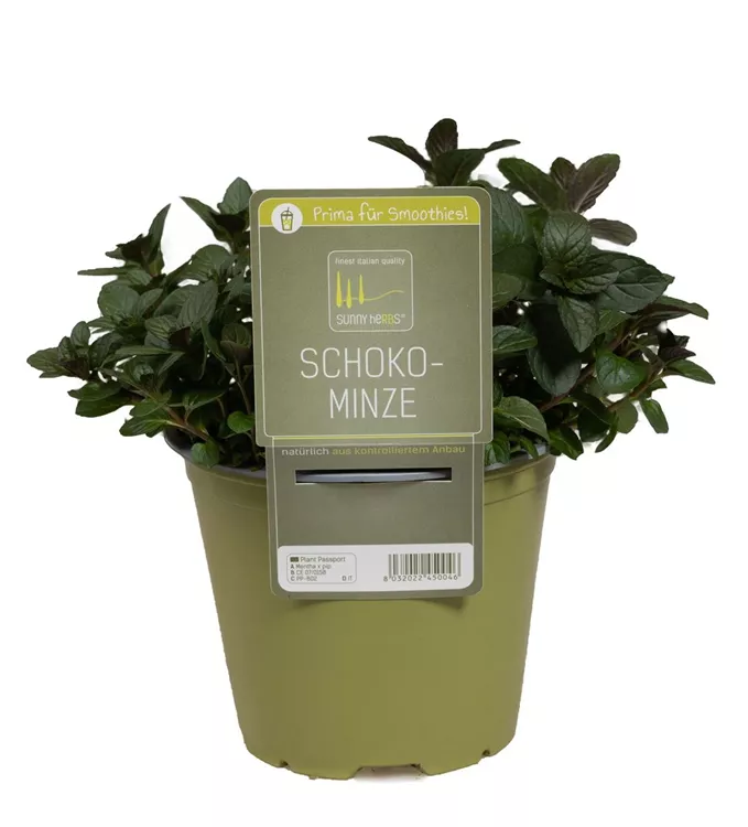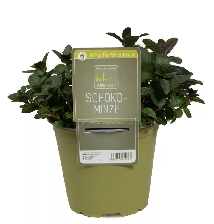 Die Schokoladen-Minze (Mentha x piperita) ist eine Kräuterpflanze mit einem erfrischenden, minzigen Geschmack. Ihre grün-braunen Blätter sind eiförmig und gezähnt. Für das optimale Wachstum der Schokoladen-Minze werden ein sonniger Standort und durchlässiger, nährstoffreicher Boden benötigt.