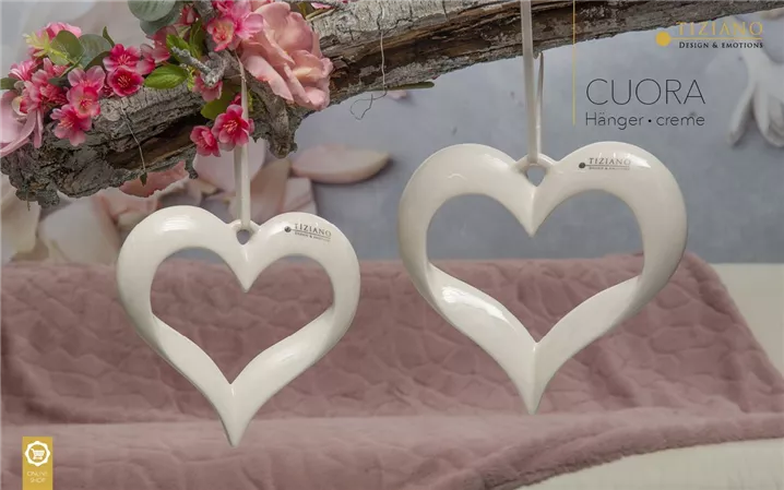Der Deko Hänger Herz Cuora begeistert schon seit vielen Jahre. Die liebevolle Gestaltung der Tiziano Produkte zeigt sich beim geschwungenen Design des Herz Hängers Cuora von seiner schönsten Seite.