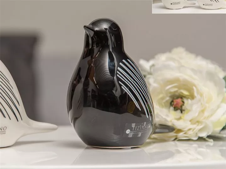 Der Vogel Tessa von Tiziano Keramik erstrahlt hier im modernen Schwarz und passt sich so gekonnt in jedem Raum an. Dieser ist auch in weiß erhältlich.
