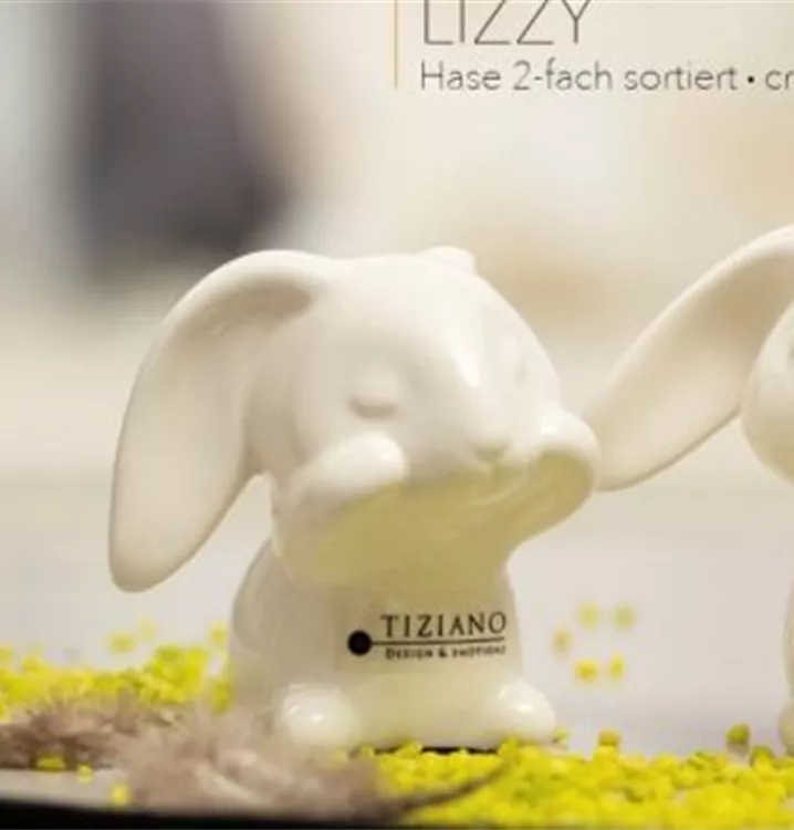 Der Dekohase Lizzy von Tiziano Keramik in creme-weiß ist mit seinen verspielten Ohren an Niedlichkeit kaum zu übertreffen und passt sich jeder Osterdeko gekonnt an.