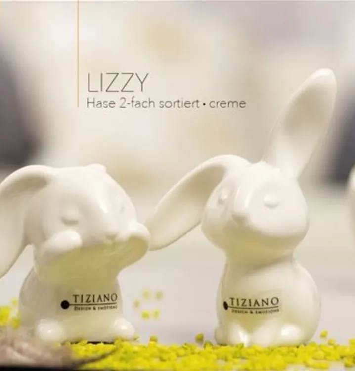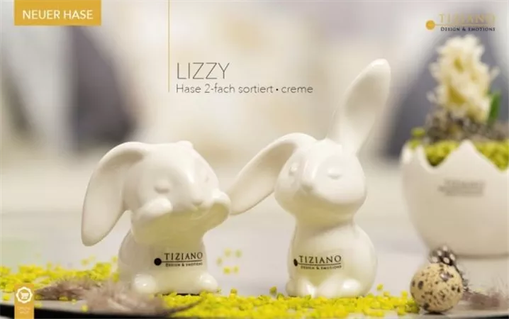 Der Dekohase Lizzy von Tiziano Keramik in creme weiß ist durch seine hängenden Ohren an Niedlichkeit kaum zu übertreffen und wird im Osternest zum echten Hingucker.