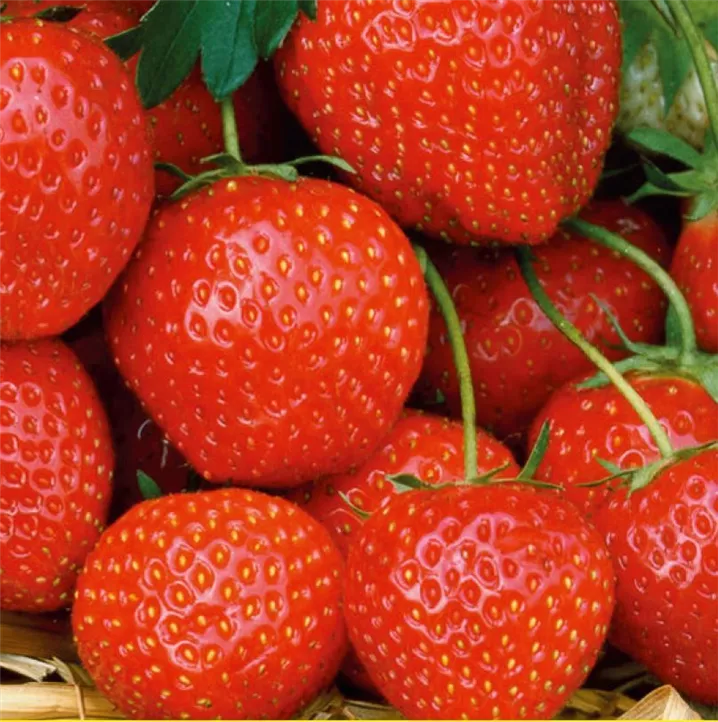Die Erdbeere 'Elsanta'® (Fragaria ananassa) bildet rote, große Beeren. Diese sind fest und süß, saftig im Geschmack. Für eine ertragreiche Ernte ab Mitte Juni schaffen durchlässiger, humoser Boden und ein sonniger Standort optimale Bedingungen. Auch ihre weißen Blüten sind eine schöne Erscheinung.