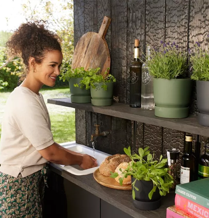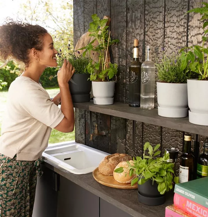 Der formschöne greenville Übertopf mit integriertem Untersetzer ist sowohl für den Innen als auch Außenbereich geeignet. Der Übertopf mit Untersetzer lässt sich perfekt mit weiteren Größen und Formen der elho Serien kombinieren.