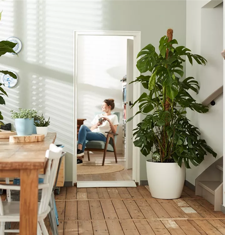 Der perfekte Übertopf für etwas grössere Zimmerpflanzen. Dank unsichtbarer Rollen kann der Topf mühelos umgestellt werden, beim Staubsaugen beispielsweise. Dieser Topf lässt sich bequem mit anderen Größen aus der brussels Kollektion von elho kombinieren.