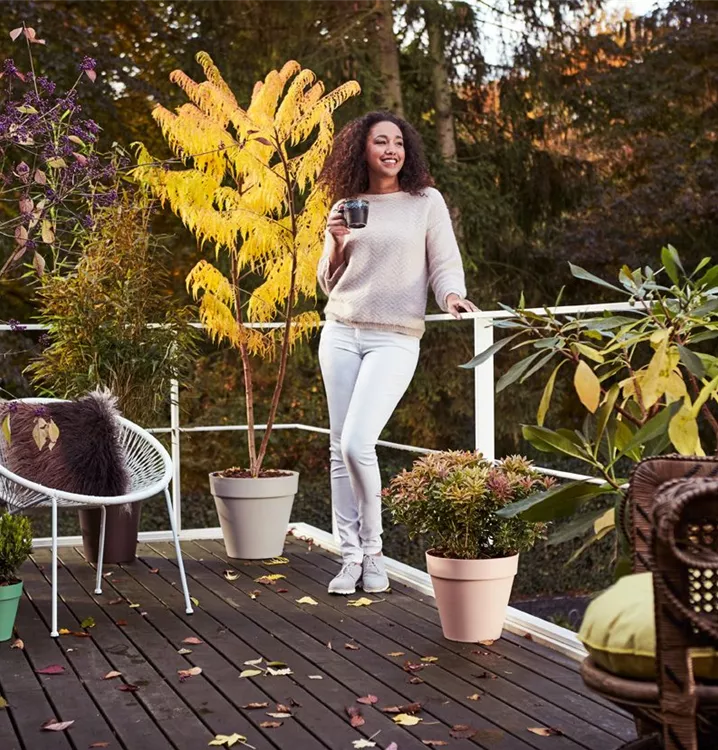 Schlicht und modern. Der Topf loft urban von elho setzt garantiert Balkon- und Terrassenbepflanzung in Szene. Er ist in verschiedenen Farben und Größen erhältlich und besteht aus recyceltem Kunststoff. Er hat im inneren ein kleines integriertes Wassereservoir wodurch Ihnen das Gießen erleichtert wird.