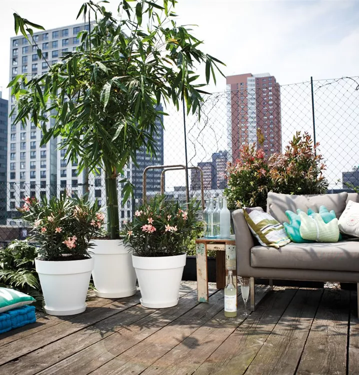 Schlicht und modern. Der Topf loft urban von elho setzt garantiert Balkon- und Terrassenbepflanzung in Szene. Er ist in verschiedenen Farben und Größen erhältlich und besteht aus recyceltem Kunststoff. Er hat im inneren ein kleines integriertes Wassereservoir wodurch Ihnen das Gießen erleichtert wird.