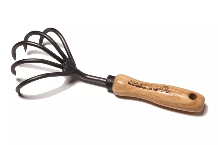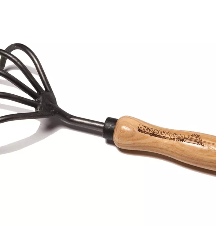 Blumenkralle (Grubber) mit 5 Zinken und Eschengriff von Krumpholz Gartenwerkzeuge.