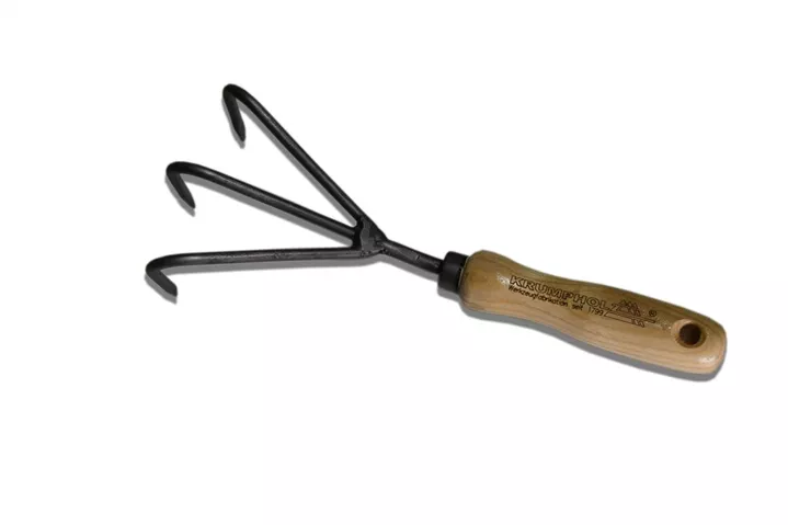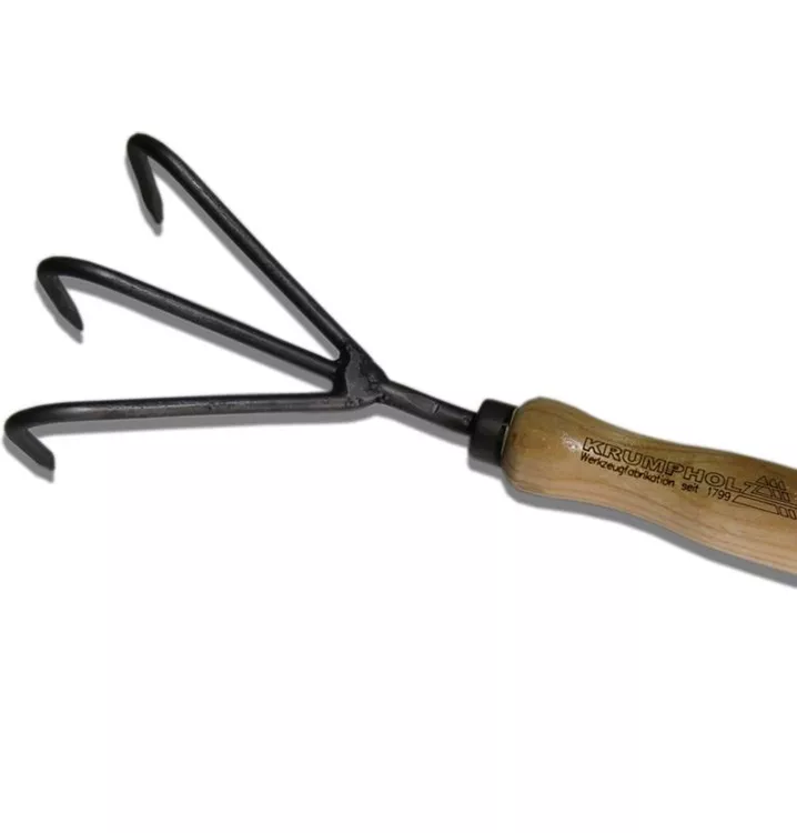 Grubber mit 3 Zinken und Eschengriff von Krumpholz Gartenwerkzeuge.