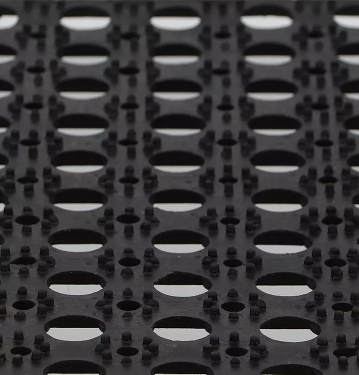 Mit der Gummiringmatte der Firma Eeschert bleibt der Schmutz garantiert draussen und eignet sich ideal auch für den Gartenbereich.