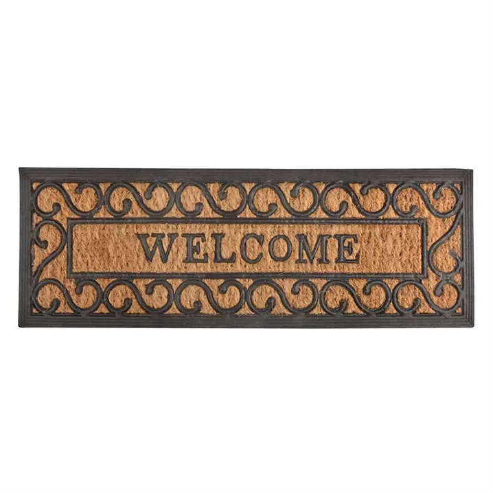 Mit der Kokosmatte "Welcome" der Firma Eeschert wird jeder Eingang zum echten Hingucker. Vor allem werden Schuhe und Stiefel durch die starken und stabilen Kokosfasern ideal gereinigt. Dank der PVC Rückseite rutscht die Matte nicht und bleibt wo sie hin soll.