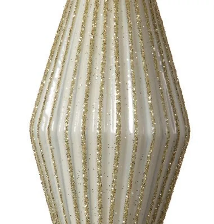 Zapfen Olive Glas 13cm Wollweiß