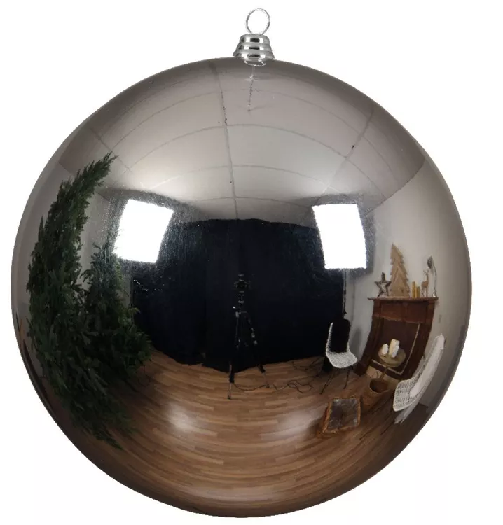 Wunderschöne, silber glänzende, grosse Weihnachtskugel zum Aufhängen und Dekorieren.