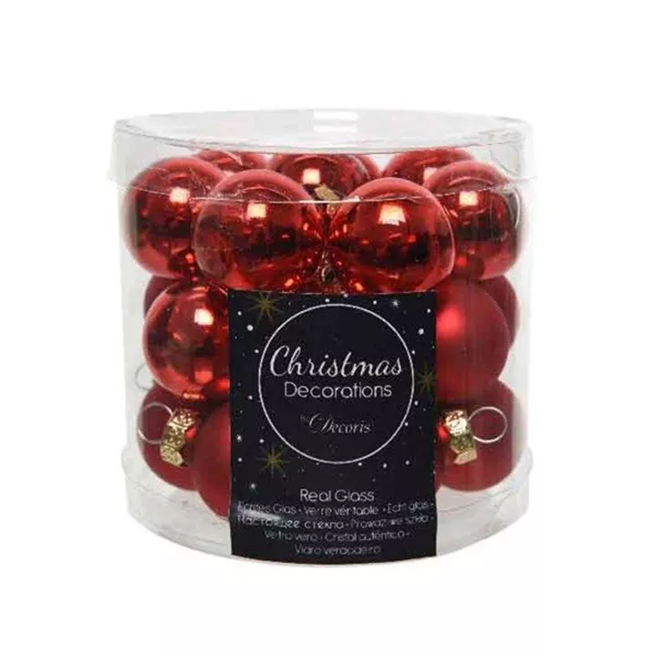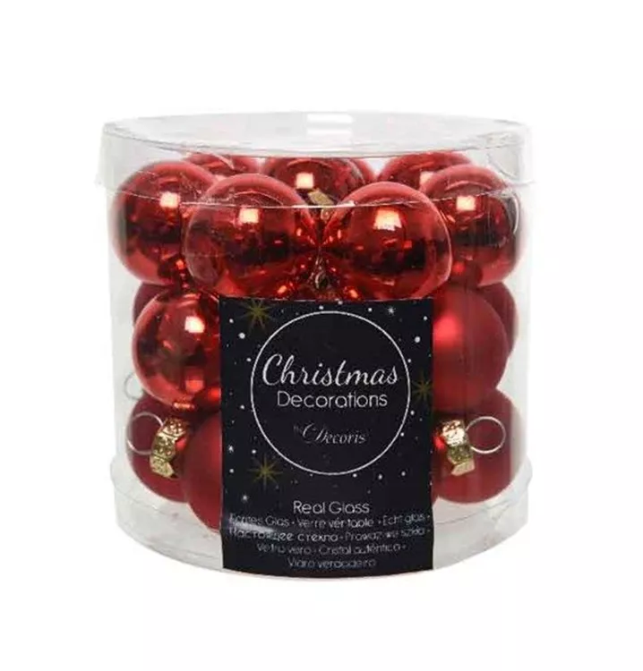 Tauchen Sie mit unserer exquisiten Kollektion von Weihnachtskugeln in die festliche Atmosphäre der Feiertage ein. Unsere Glas-Weihnachtskugeln, mit einem Durchmesser von 2,5 cm, sind das perfekte Accessoire, um Ihrem Weihnachtsbaum ein glanzvolles und elegantes Aussehen zu verleihen. Jede Verpackungseinheit umfasst 24 Kugeln, von denen die Hälfte einen glänzenden und die andere Hälfte einen matten Finish besitzt. Diese Kontraste erzeugen eine faszinierende visuelle Dynamik und verleihen Ihrem Baum eine einzigartige, stilvolle Note.