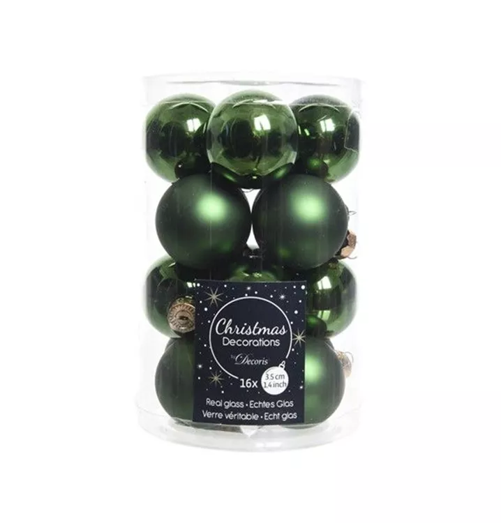 Tauchen Sie mit unserer exquisiten Kollektion von Weihnachtskugeln in die festliche Atmosphäre der Feiertage ein. Unsere Glas-Weihnachtskugeln, mit einem Durchmesser von 3,5 cm, sind das perfekte Accessoire, um Ihrem Weihnachtsbaum ein glanzvolles und elegantes Aussehen zu verleihen. Jede Verpackungseinheit umfasst 16 Kugeln, von denen die Hälfte einen glänzenden und die andere Hälfte einen matten Finish besitzt. Diese Kontraste erzeugen eine faszinierende visuelle Dynamik und verleihen Ihrem Baum eine einzigartige, stilvolle Note.
