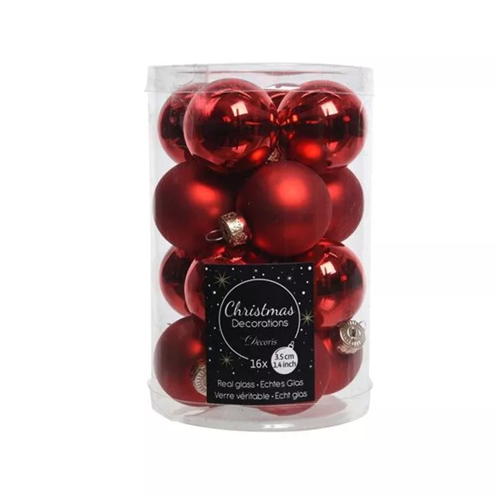 Tauchen Sie mit unserer exquisiten Kollektion von Weihnachtskugeln in die festliche Atmosphäre der Feiertage ein. Unsere Glas-Weihnachtskugeln, mit einem Durchmesser von 3,5 cm, sind das perfekte Accessoire, um Ihrem Weihnachtsbaum ein glanzvolles und elegantes Aussehen zu verleihen. Jede Verpackungseinheit umfasst 16 Kugeln, von denen die Hälfte einen glänzenden und die andere Hälfte einen matten Finish besitzt. Diese Kontraste erzeugen eine faszinierende visuelle Dynamik und verleihen Ihrem Baum eine einzigartige, stilvolle Note.