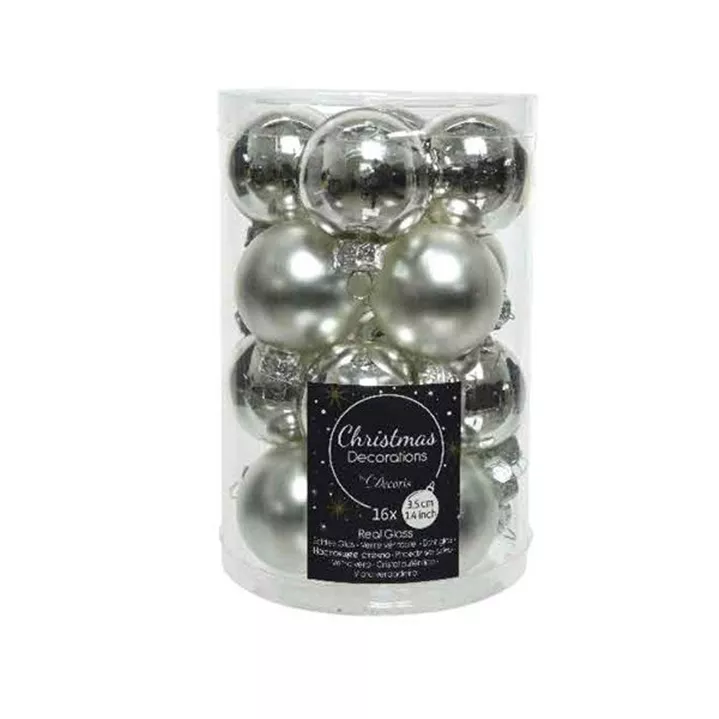 Tauchen Sie mit unserer exquisiten Kollektion von Weihnachtskugeln in die festliche Atmosphäre der Feiertage ein. Unsere Glas-Weihnachtskugeln, mit einem Durchmesser von 3,5 cm, sind das perfekte Accessoire, um Ihrem Weihnachtsbaum ein glanzvolles und elegantes Aussehen zu verleihen. Jede Verpackungseinheit umfasst 16 Kugeln, von denen die Hälfte einen glänzenden und die andere Hälfte einen matten Finish besitzt. Diese Kontraste erzeugen eine faszinierende visuelle Dynamik und verleihen Ihrem Baum eine einzigartige, stilvolle Note.