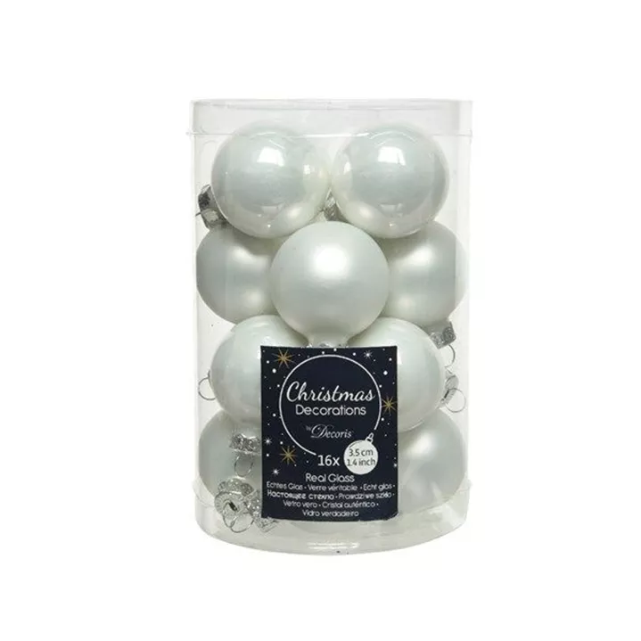 Tauchen Sie mit unserer exquisiten Kollektion von Weihnachtskugeln in die festliche Atmosphäre der Feiertage ein. Unsere Glas-Weihnachtskugeln, mit einem Durchmesser von 3,5 cm, sind das perfekte Accessoire, um Ihrem Weihnachtsbaum ein glanzvolles und elegantes Aussehen zu verleihen. Jede Verpackungseinheit umfasst 16 Kugeln, von denen die Hälfte einen glänzenden und die andere Hälfte einen matten Finish besitzt. Diese Kontraste erzeugen eine faszinierende visuelle Dynamik und verleihen Ihrem Baum eine einzigartige, stilvolle Note.