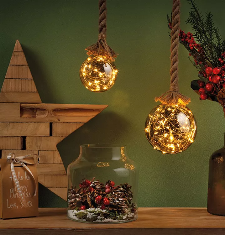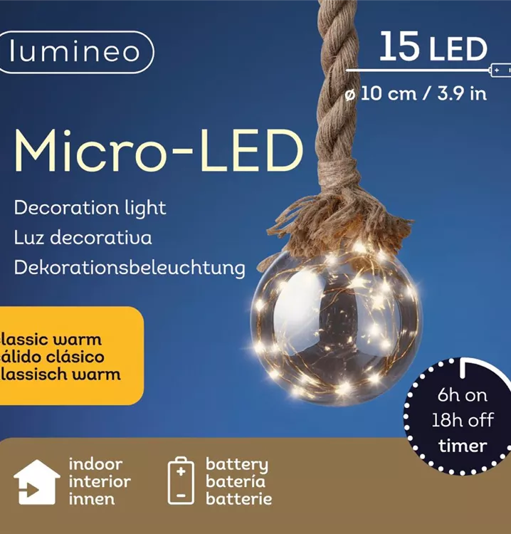 In der LED Echtglaskugel befinden sich 15 klassisch warme LED’s. Befestigt ist sie an einem 0,8 m langem Seil. Die Kugel lässt garantiert jeden Raum erstrahlen und sorgt v.a zur Weihnachtszeit für ein stimmungsvolles Ambiente.