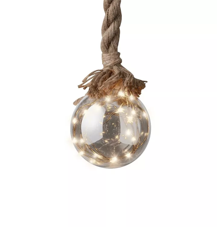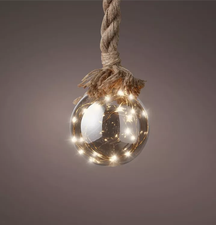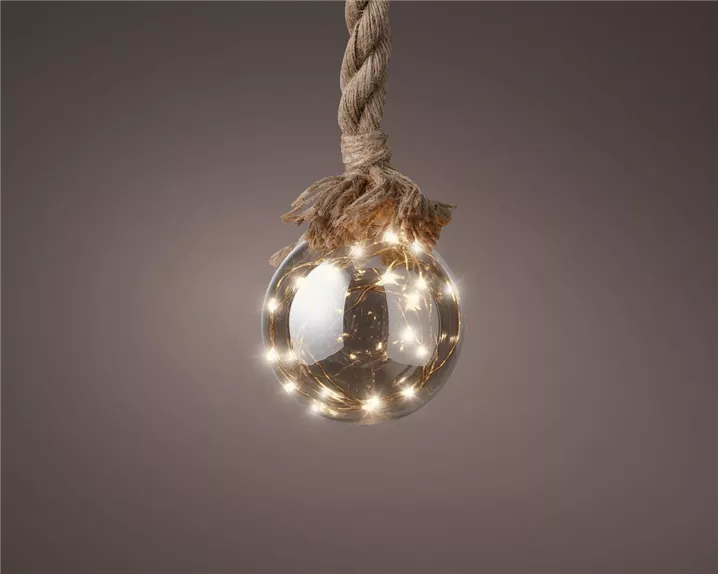 LED Glas Kugel von lumineo hängend am Seil. x000D
