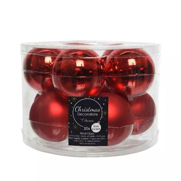 Tauchen Sie mit unserer exquisiten Kollektion von Weihnachtskugeln in die festliche Atmosphäre der Feiertage ein. Unsere Glas-Weihnachtskugeln, mit einem Durchmesser von 6 cm, sind das perfekte Accessoire, um Ihrem Weihnachtsbaum ein glanzvolles und elegantes Aussehen zu verleihen. Jede Verpackungseinheit umfasst 10 Kugeln, von denen die Hälfte einen glänzenden und die andere Hälfte einen matten Finish besitzt. Diese Kontraste erzeugen eine faszinierende visuelle Dynamik und verleihen Ihrem Baum eine einzigartige, stilvolle Note.