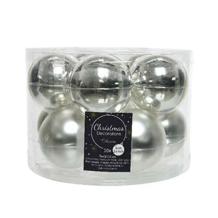 Tauchen Sie mit unserer exquisiten Kollektion von Weihnachtskugeln in die festliche Atmosphäre der Feiertage ein. Unsere Glas-Weihnachtskugeln, mit einem Durchmesser von 6 cm, sind das perfekte Accessoire, um Ihrem Weihnachtsbaum ein glanzvolles und elegantes Aussehen zu verleihen. Jede Verpackungseinheit umfasst 10 Kugeln, von denen die Hälfte einen glänzenden und die andere Hälfte einen matten Finish besitzt. Diese Kontraste erzeugen eine faszinierende visuelle Dynamik und verleihen Ihrem Baum eine einzigartige, stilvolle Note.