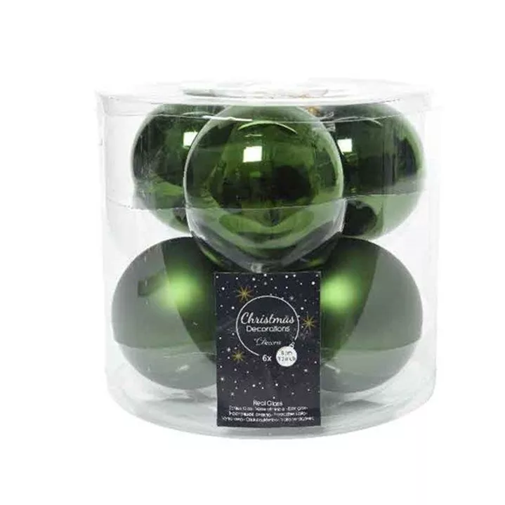 Tauchen Sie mit unserer exquisiten Kollektion von Weihnachtskugeln in die festliche Atmosphäre der Feiertage ein. Unsere Glas-Weihnachtskugeln, mit einem Durchmesser von 8 cm, sind das perfekte Accessoire, um Ihrem Weihnachtsbaum ein glanzvolles und elegantes Aussehen zu verleihen. Jede Verpackungseinheit umfasst 6 Kugeln, von denen die Hälfte einen glänzenden und die andere Hälfte einen matten Finish besitzt. Diese Kontraste erzeugen eine faszinierende visuelle Dynamik und verleihen Ihrem Baum eine einzigartige, stilvolle Note.