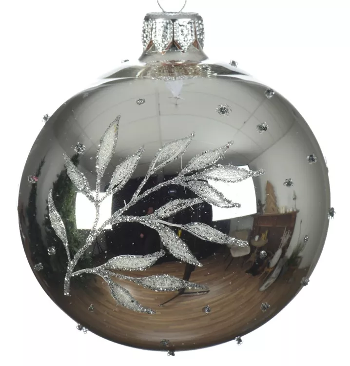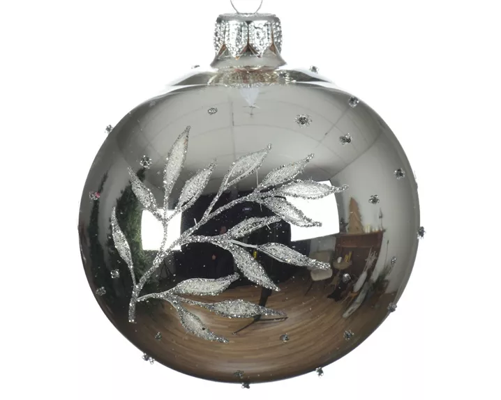 Wunderschöne, einzelne Glaskugel in silber für den Weihnachtsbaum.