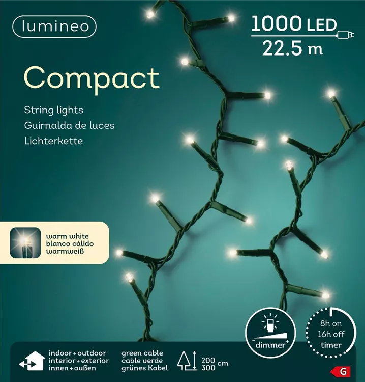 Lichterkette von lumineo in warm weiß mit LED, 22.5 Meter, grüne Kabel