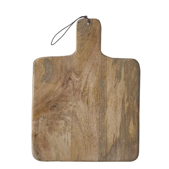 Mit dem praktischen Duko Schneidebrett profitieren Sie von vielseitigen Verwendungsmöglichkeiten! Das Servierbrett ist aus Mangoholz gefertigt und hat eine warme, naturbraune Farbe. Das natürliche Material macht jedes Exemplar zu einem individuellen Unikat. Der praktische Handgriff erleichtert die Handhabung und nach Gebrauch lässt es sich platzsparend mit seiner Aufhängeschlaufe an der Wand befestigen. Das Snackbrett sollte nicht in der Spülmaschine gereinigt werden; seine glatte Oberfläche lässt sich nach Gebrauch jedoch mühelos mit einem Tuch reinigen.