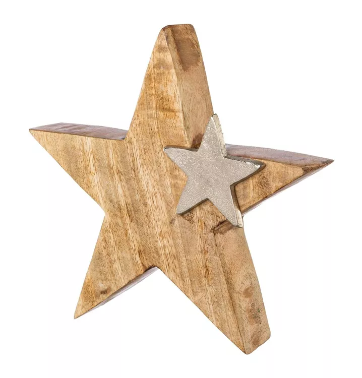• Holz Stern mit eingearbeiteten Aluminium Stern