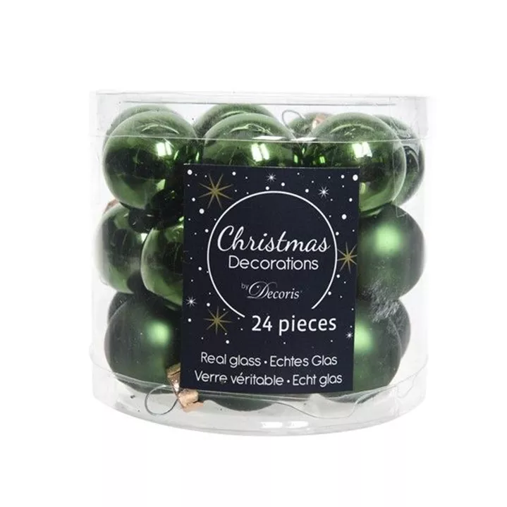 Tauchen Sie mit unserer exquisiten Kollektion von Weihnachtskugeln in die festliche Atmosphäre der Feiertage ein. Unsere Glas-Weihnachtskugeln, mit einem Durchmesser von 2,5 cm, sind das perfekte Accessoire, um Ihrem Weihnachtsbaum ein glanzvolles und elegantes Aussehen zu verleihen. Jede Verpackungseinheit umfasst 24 Kugeln, von denen die Hälfte einen glänzenden und die andere Hälfte einen matten Finish besitzt. Diese Kontraste erzeugen eine faszinierende visuelle Dynamik und verleihen Ihrem Baum eine einzigartige, stilvolle Note.