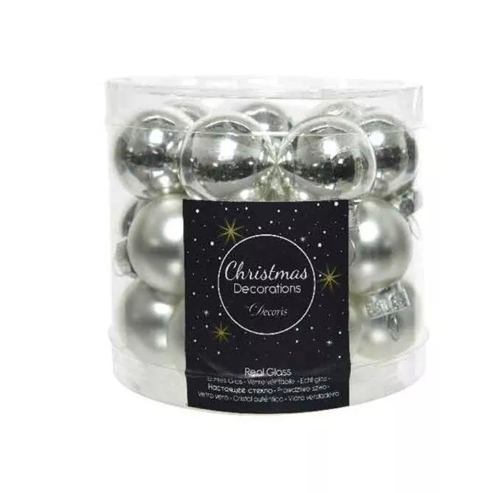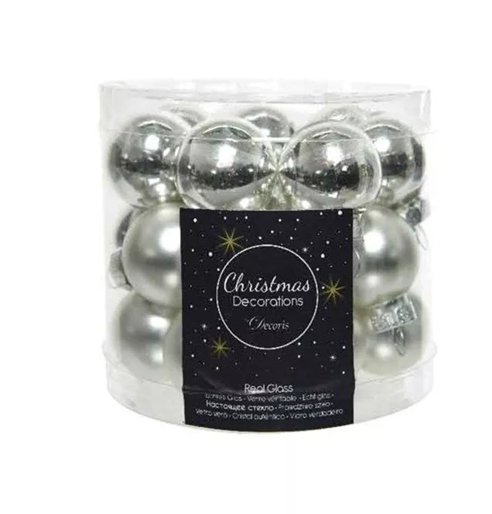 Tauchen Sie mit unserer exquisiten Kollektion von Weihnachtskugeln in die festliche Atmosphäre der Feiertage ein. Unsere Glas-Weihnachtskugeln, mit einem Durchmesser von 2,5 cm, sind das perfekte Accessoire, um Ihrem Weihnachtsbaum ein glanzvolles und elegantes Aussehen zu verleihen. Jede Verpackungseinheit umfasst 24 Kugeln, von denen die Hälfte einen glänzenden und die andere Hälfte einen matten Finish besitzt. Diese Kontraste erzeugen eine faszinierende visuelle Dynamik und verleihen Ihrem Baum eine einzigartige, stilvolle Note.