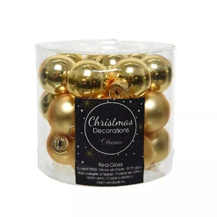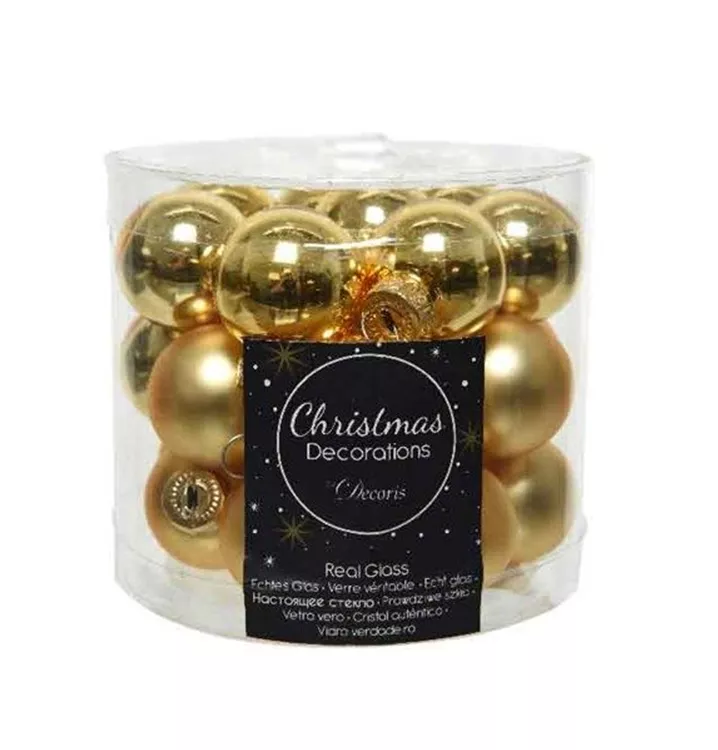 Tauchen Sie mit unserer exquisiten Kollektion von Weihnachtskugeln in die festliche Atmosphäre der Feiertage ein. Unsere Glas-Weihnachtskugeln, mit einem Durchmesser von 2,5 cm, sind das perfekte Accessoire, um Ihrem Weihnachtsbaum ein glanzvolles und elegantes Aussehen zu verleihen. Jede Verpackungseinheit umfasst 24 Kugeln, von denen die Hälfte einen glänzenden und die andere Hälfte einen matten Finish besitzt. Diese Kontraste erzeugen eine faszinierende visuelle Dynamik und verleihen Ihrem Baum eine einzigartige, stilvolle Note.