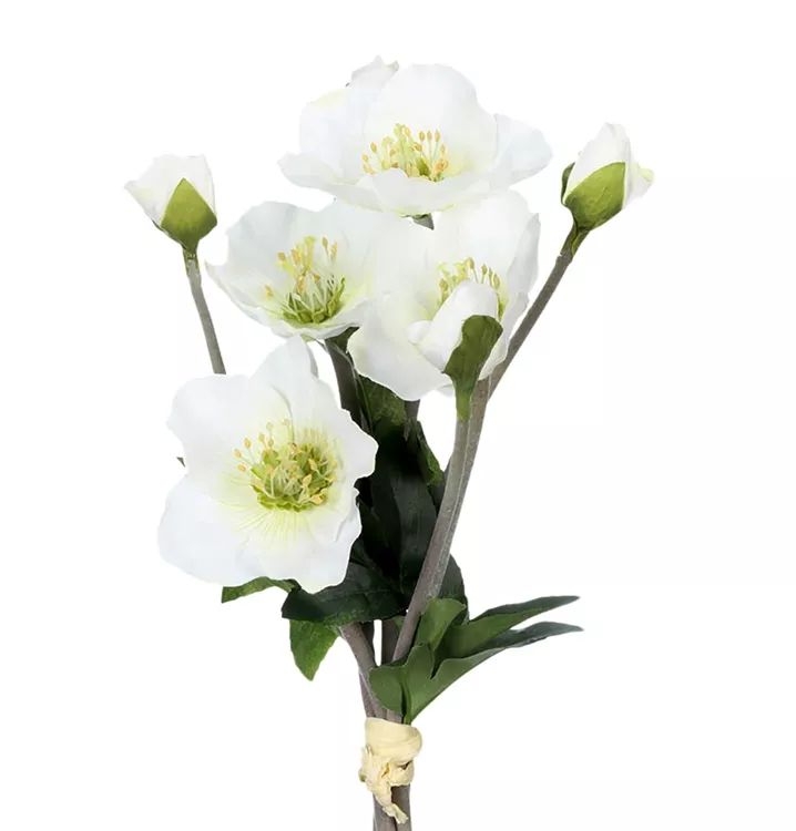 Ein Seidenblumen Christrosenarrangement in weiß mit einer Länge von ca. 35cm