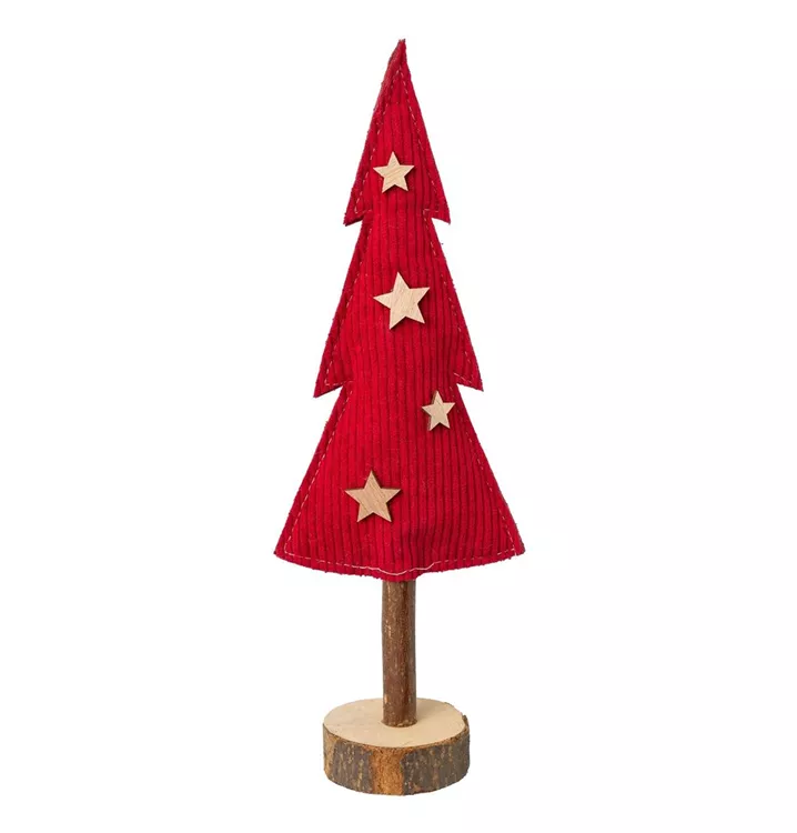 Weihnachtliches Holz Bäumchen mit Cord Stoff verarbeitet in rot mit einer Höhe von ca. 30cm