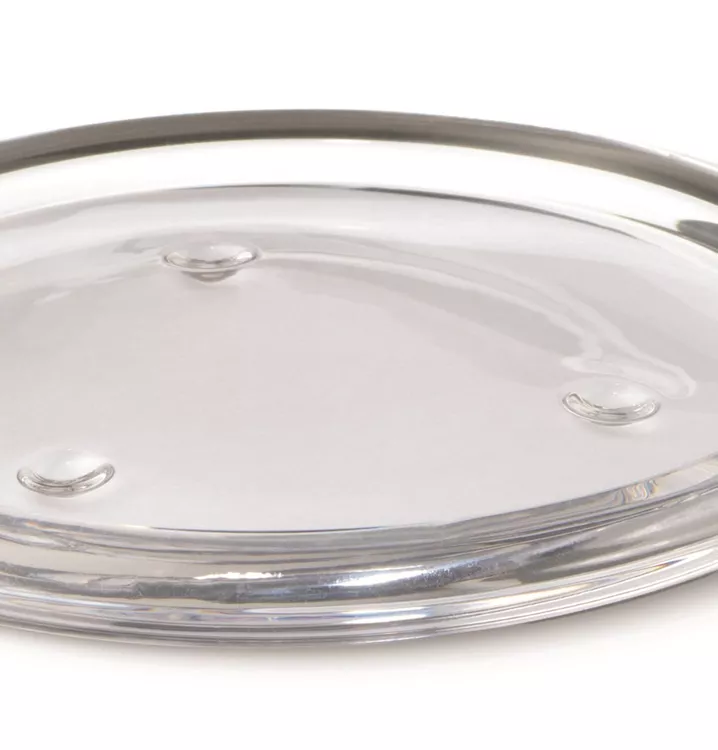 Klassischer, runder Glasteller- ideal zur Dekoration mit Kerzen.