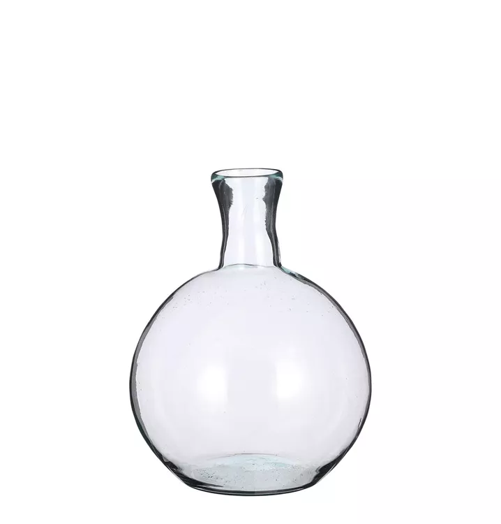 Die Lilou Glasflasche von Mica Decorations fällt mit ihrer schönen, runden Form sofort ins Auge. Die Vase stammt aus Rumänien und wird aus recyceltem Glas handgefertigt. Sehr nachhaltig! Legen Sie ein paar lose Federn, Blumen oder künstliche Zweige hinein, und schon haben Sie einen schönen Dekorationsgegenstand für den Tisch, das Sideboard oder die Fensterbank. Mit der transparenten Farbe passt die Flasche in jede Einrichtung.