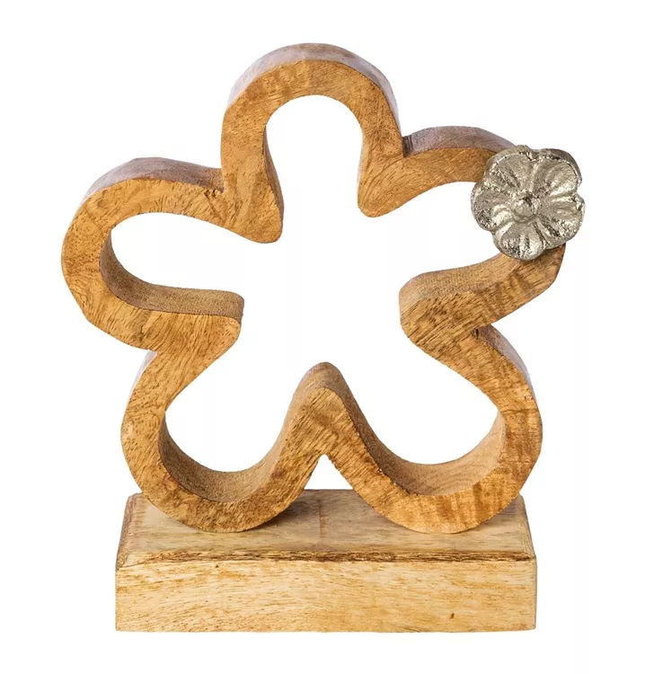 • Natürliche Basis: Das robuste Holzfundament bietet einen warmen Kontrast zum kühlen Metall und sorgt für eine natürliche Balance und Stabilität.