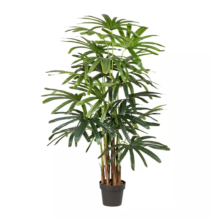 Die Pflanze präsentiert sich in einem stilvollen schwarzen Kunststofftopf, der nahtlos in jede Einrichtung passt – von modern bis klassisch. Das sorgfältig gestaltete Raphismalmen-Design wirkt täuschend echt, sodass Sie die Schönheit der Natur genießen können, ohne sich um Gießen oder Standortbedingungen sorgen zu müssen. Egal ob als zentrales Deko-Element in Ihrem Wohnzimmer, als beruhigender grüner Akzent in Ihrem Büro oder als Teil eines größeren Arrangements, diese Raphispalme fügt sich harmonisch in seine Umgebung ein.