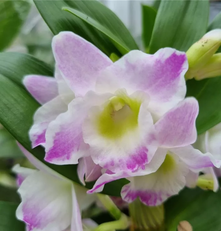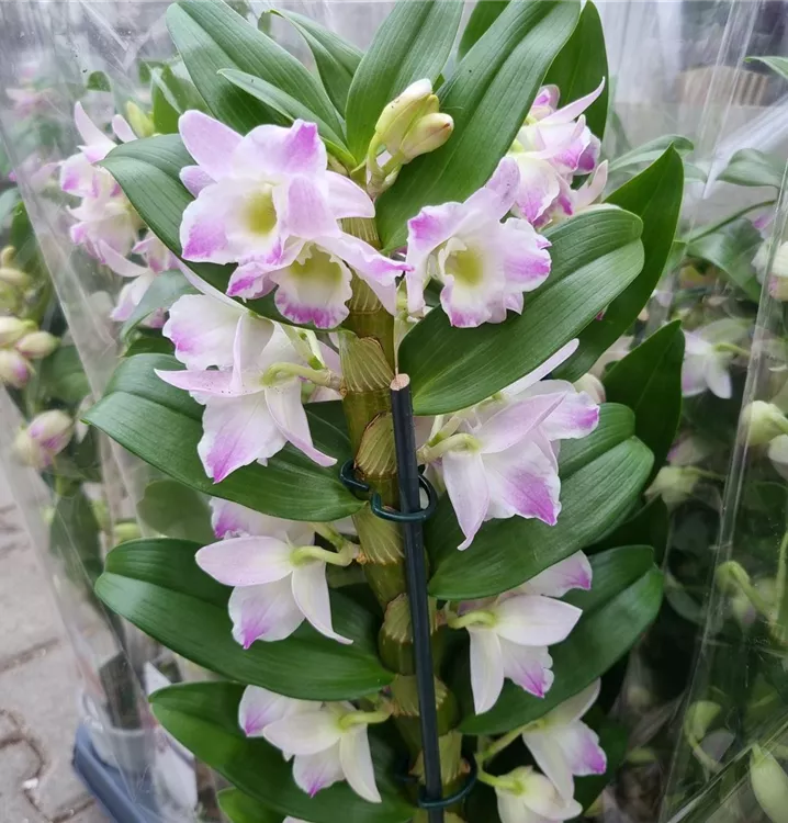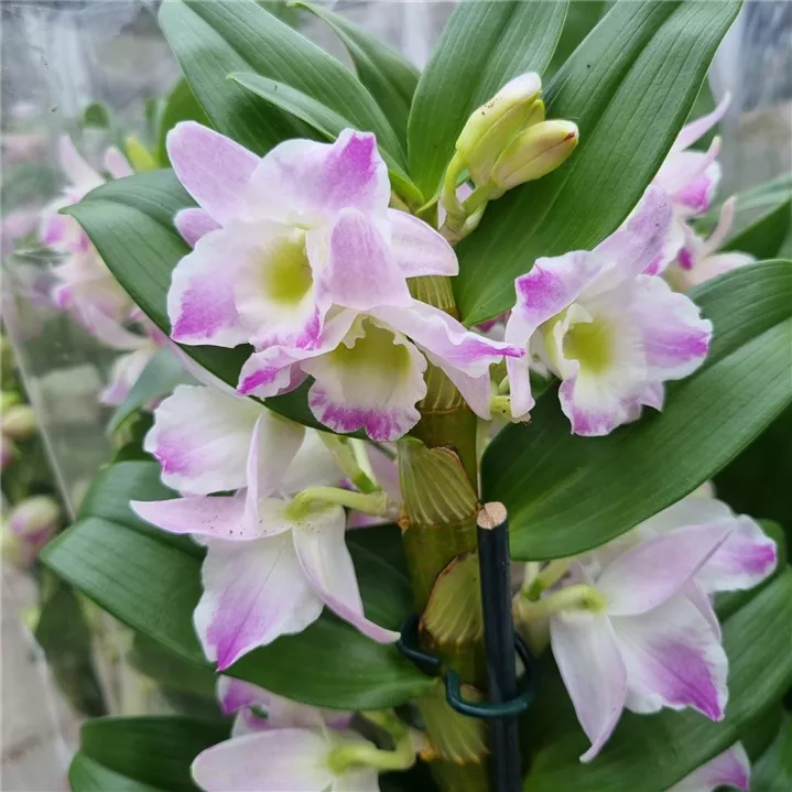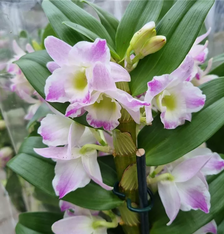Dendrobium nobile 'Kumiko' bringt von März bis Mai dekorative weiße Blüten hervor.