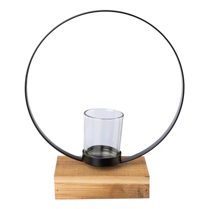 Metall Ring Objekt mit Glas 20x7x23cm schwarz