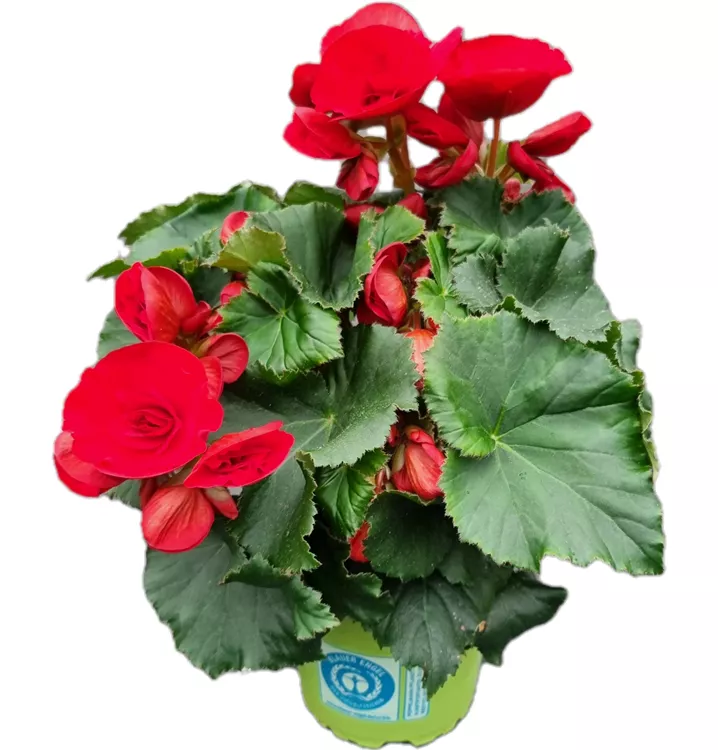 Begonia elatior 'Barkos'® bildet während der gesamten Saison zahlreiche schalenförmige, rote Blüten.