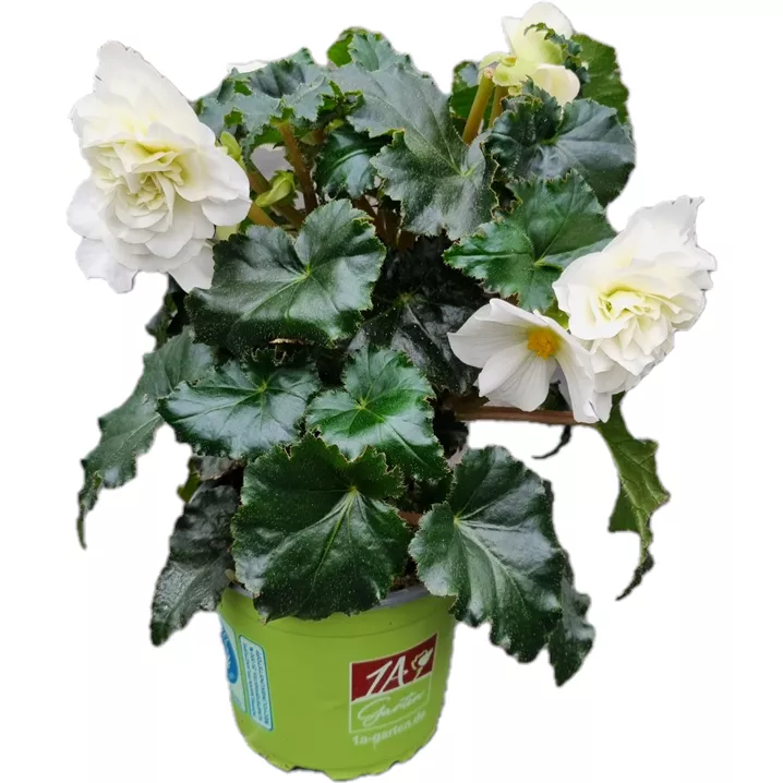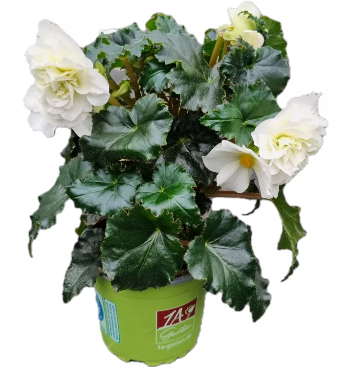 Die Begonie 'Matilda' (Begonia elatior) ist eine beliebte Pflanze für den Balkon, die während der gesamten Saison unzählige weiße, starkgefüllte Blüten bildet. Die dunkelgrünen Blätter sind dreieckig. Ein sonniger bis halbschattiger Standort und ein durchlässiges Substrat werden bevorzugt.