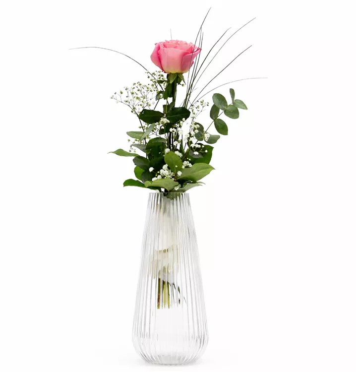 Rose Rosa 1 Stück gebunden mit Beiwerk