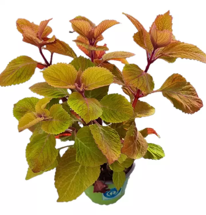 Die Buntnessel (Coleus blumei) ist eine Pflanze mit dekorativen, mehrfarbigen Blättern. Sie sind eiförmig, lanzettlich und gekerbt. Bei guten Bedingungen bringt sie von Juni bis September unscheinbare Blüten hervor. Diese aufrechte Pflanze gedeiht am besten an einem sonnigen bis halbschattigen Standort.