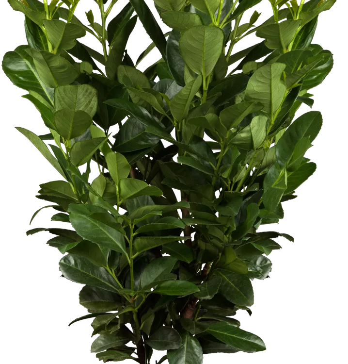 Lorbeerkirsche 'Etna'® ist ein buschig und dicht wachsender Strauch. Sie erreicht gewöhnlich eine Höhe von 2 - 2,5 m und wird ca. 0,8 - 1 m breit. In der Regel wächst sie 20 - 30 cm pro Jahr.